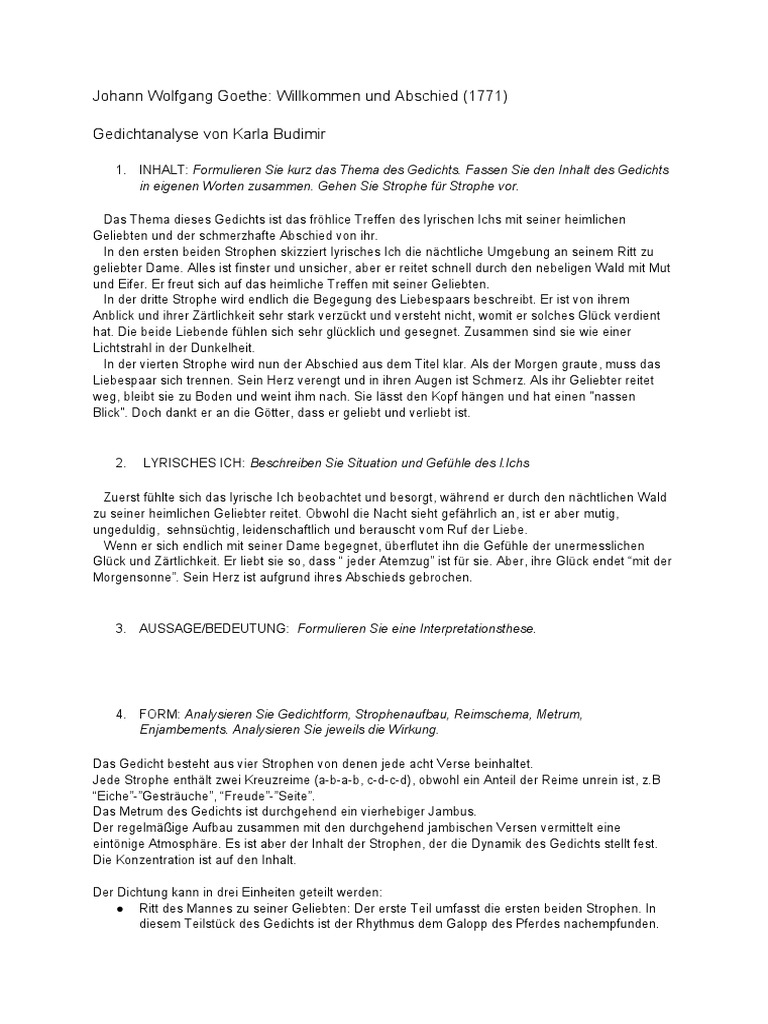 Johann Wolfgang Von Goethe Willkommen Und Abschied Inhaltsangabe